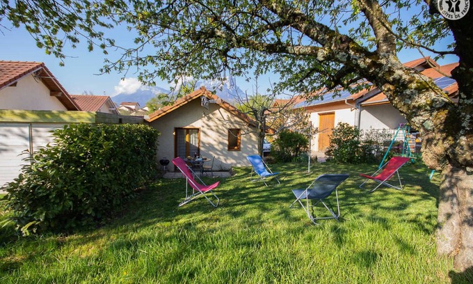 Detached house. Ground floor: kitchen sitting area (2 beds 1 p. in convertible BZ), Wifi, 1 bedroom (1 bed 2 p.), bathroom (shower). Terrace, Court, patio. Ski Granier 19 km, the Desert of Entremont 24 km. Swimming and Spa 6 km. Swimming pool 3 km. Golf 6 km. Charming contemporary House. Beekeeping in activity (no noise). In the French countryside in the heart of the vineyard of Savoie. Residential quiet. Very good comfort. Warm contemporary rustic charm. Terrace + nice private garden. Beautiful view.