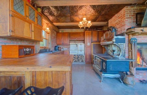 The living room area will charm with its huge windows and its wood fireplace, a TV and a DVD player. Be prepared because the chalet l'Ancestral has also kept a kitchen in the areas of yesteryear with a wood stove, a small stove and a fridge. This one does not include the modern day freezer unit. A Keurig coffee maker is available to start the morning off right. A fondue stove (gas) as well as an electric fondue stove will be at your disposal during your stay. Although the ancestral cachet is prioritized, air conditioning is available.