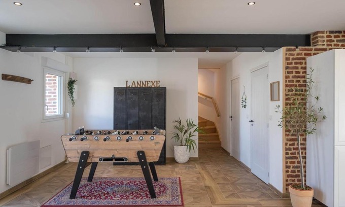 L'annexe Morbecque offers accommodations in Morbecque, 25 miles from The Menin Gate and 26 miles from St. Philibert Metro Station. With garden views, this accommodation offers a terrace. Staff on site can arrange a shuttle service. With free Wifi, this 6-bedroom vacation home features a satellite flat-screen TV, a washing machine, and a fully equipped kitchen with a dishwasher and oven. Guests can enjoy an ambient stay in their soundproof room with parquet floors and a fireplace. The property has an outdoor dining area. For visitors looking to embark on day trips to nearby landmarks, the vacation home provides a selection of packed lunches. There is a garden with a barbecue at this property, and guests can go hiking and walking tours nearby. Zoo Lille is 28 miles from L'annexe Morbecque, while Louvre Lens Museum is 29 miles from the property. Lille Airport is 35 miles away.