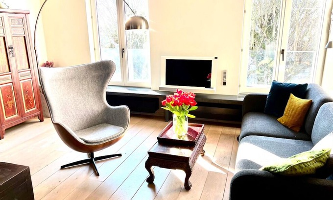 Well situated and quiet duplex apartment, just 200m across the water from Gent-Dampoort railway station, with Flixbus and Eurolines busses, and free parking on the station's parking lot.