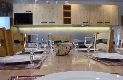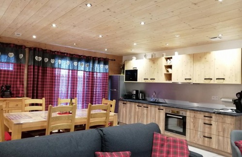 Ground floor apartment in the owners' house (separate entrance). Living room offering a fully equipped fitted kitchen, pleasant living room with sound bar. 3 bedrooms (2 bedrooms with 2 twin single beds for a 160x200cm bed / 1 bedroom with a 160x200cm double bed with private bathroom (shower + wc) in the bedroom). 1 independent WC. 1 bathroom with large shower, thermostatic tap and tropical rain shower head. Private terrace. Garage on request from the owner (supplement). Modern architecture chalet located in the immediate vicinity of the cross-country ski slopes and 500 m from the alpine ski slopes. Located in a residential area, this cottage enjoys a location facing nature and the mountains while being close to the town center.