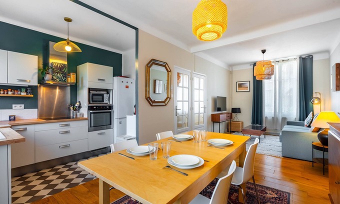 Cocoonr Agency offers you this charming 105 m² 1930s house in Nancy, which can accommodate up to 6 travelers. It features a lovely 30 m² living room, a fully-equipped kitchen, three bedrooms, two bathrooms (with shower) and a private 20 m² garden. Housekeeping is included in the rental price, and 4* hotel-quality linen is provided (sheets, towels, tea towels). Your bed will be made up on arrival.