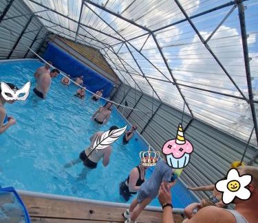 BathroomShower, Toilet paper, Toilet, Shared bathroom, Hairdryer, Bathtub, Shared toilet, TowelsMedia & TechnologyTV, Satellite channels, Flat-screen TVGeneralCarbon monoxide sources, Iron, Carbon monoxide detector, Heating, Private entrance, Fire extinguisher, Ironing facilities, Smoke AlarmKitchenDining table, Electric kettle, RefrigeratorLiving AreaSitting area, Dining areaBedroomWalk-in closet, Linens, Wardrobe or closetViewViewRoom AmenitiesHypoallergenic pillow, Socket near the bed, Clothes rackEntertainment & Family ServicesBoard games/puzzlesPool and SpaHeated pool |