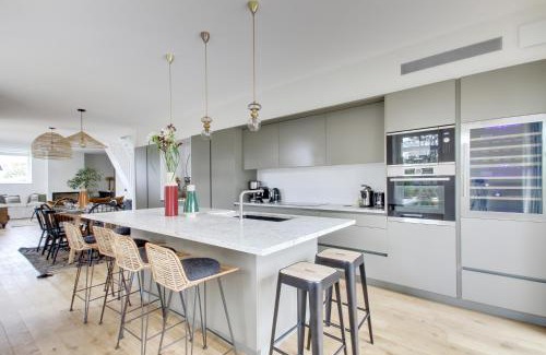 L'Entre Deux Mers - Belle maison 8 personnes offers accommodations in Dinard, 1.8 miles from Port Breton Park and 7.1 miles from Solidor Tower. This property offers access to a terrace, free private parking, and free Wifi. Palais du Grand Large is 8.1 miles from the vacation home and Saint-Malo Casino is 8.1 miles away. The spacious vacation home includes 4 bedrooms, a living room, and 4 bathrooms with a hair dryer and a shower. Guests can take in the views of the sea from the balcony, which also has outdoor furniture. There's also a seating area and a fireplace. There is a garden with a barbecue at this property, and guests can go hiking nearby. Popular points of interest near the vacation home include Malouine Beach, Casino of Dinard, and Marina. Rennes–Saint-Jacques Airport is 50 miles from the property.