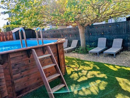 L'entre Deux Vignes offers accommodations in Brizambourg, 10 miles from Saint Pierre Cathedral and 11 miles from Saintes Golf. 10 miles from Saintes Train Station and 10 miles from Abbaye aux Dames, the property offers a garden and barbecue facilities. The bed and breakfast provides an outdoor swimming pool with a fence, along with free Wifi. Offering garden or quiet street views, each unit comes with a kitchen, a satellite TV and game console, desk, and a private bathroom with shower and a hair dryer. A dishwasher, an oven, and microwave are also provided, as well as a coffee machine and a kettle. At the bed and breakfast, all units have bed linen and towels. You can play billiards and table tennis at this 4-star bed and breakfast, and the area is popular for cycling and hiking. Cognac Golf Course is 16 miles from the bed and breakfast, while Roche Courbon Castle is 18 miles away. La Rochelle - Île de Ré Airport is 51 miles from the property.