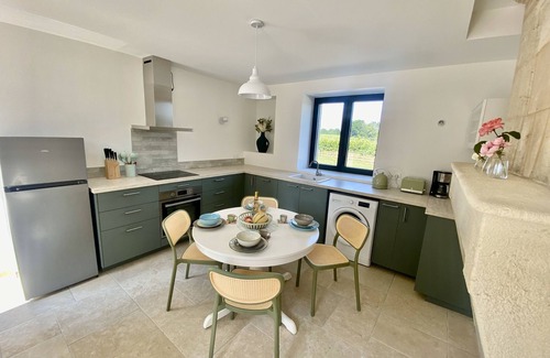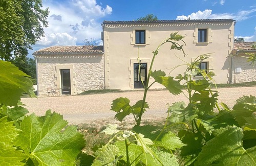 A charming house with spectacular views of a vineyard offers 3 comfortable bedrooms, a living room, and a fully equipped kitchen in a quiet and secluded place with proximity to Libourne (20min), Saint-Emilion (30min), and Bordeaux (40min). It allows you to spend your vacation in comfort and privacy. You will have an opportunity to taste our award-winning wines, perfectly suited for enhancing your barbecues, indulgent aperitifs, and exquisite dinners! You can spend time by the pool sunbathing and, in the evening, sit by the fire pit in a romantic atmosphere under the stars. Our activities: wine tasting, picnic basket, horse riding on the vineyards and even more.