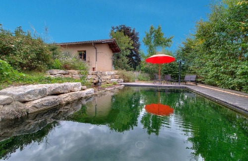 Welcome to L'Escale, in Trévoux, where you can savor the originality of the place. An atypical interlude. Discover your vacation home, with private relaxation areas in the cottage and common areas located below the garden. Let yourself be amazed by the owner's natural swimming pool: a live pool with fish and aquatic plants, for a refreshing, surprising, and completely exotic swim. Here, there's no chlorine or artificial blue, just nature in all its splendor... and the pleasure of reconnecting with an authentic environment. There are many discoveries to be made around the cottage. In Trévoux, stroll through the medieval streets. This former capital of the Principality of Dombes charms with its picturesque cobbled streets and artists' studios. And what if the invitation continued through the many walks and bike rides? Explore the Voie Bleue and escape along the peaceful riverbanks, offering an ideal setting to breathe and enjoy the outdoors. Have you heard of Ars-sur-Formans? Its famous sanctuary and the history of the Saint-Curé of Ars, Jean-Marie Vianney, offer a cultural and spiritual excursion. Upon returning from your "Stopover," this two-story house offers a unique touch. The main living area is located upstairs, along with a bedroom for two. A lounge area with an ornamental fireplace is available for cozy evenings (the fireplace doesn't heat, but it sets the mood). Two bedrooms with separate entrances are located on the garden level. Technical description: 1st floor accessible by an exterior staircase - semi-open kitchen to the living room, lounge, bedroom (two 90x200 cm beds that can be joined together) with a private bathroom. Ground floor: 2 bedrooms (1 queen-size bed, 1 single bed, 1 queen-size bed). Private bathroom. Pack light: beds made upon arrival, towels and linens, utilities, and cleaning are all included.