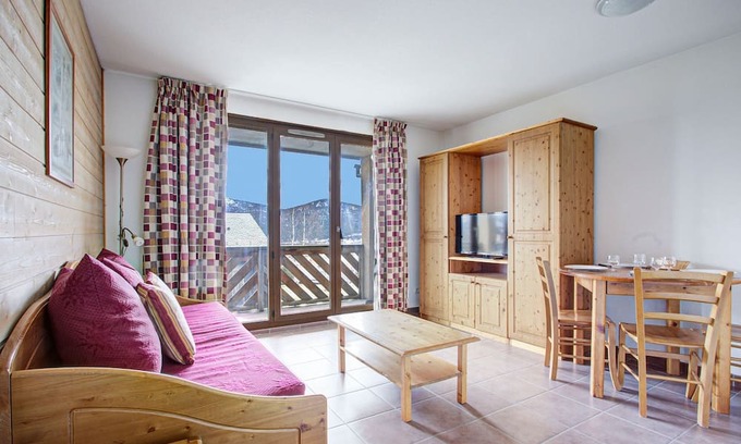 The Cocoonr/Book&Pay agency in Les Angles offers this charming 30 m² apartment with mountain views and ski resort within walking distance, which can accommodate up to 4 people. Located on the 1st floor (no elevator), it comprises an 18 m² living room, a fully-equipped kitchen, a bedroom and a bathroom (with bath).