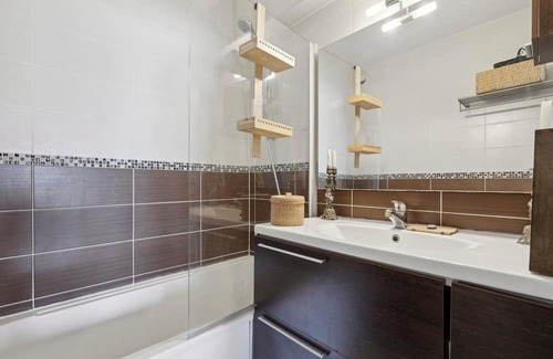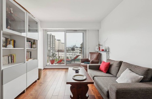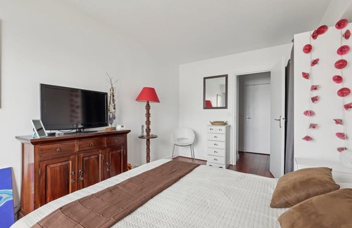 The apartment consists of a large, modern and bright living room with a comfortable lounge and a fully equipped open kitchen (coffee machine, kettle, microwave, dishwasher, etc.). The apartment has a beautiful, bright bedroom with a 140 double bed with a connected TV with Netflix, Canal et Disney +. The bathroom is spacious and has a bathtub. Finally, the apartment has a superb little quiet balcony, not overlooked, ideal for relaxing after a day of sightseeing !