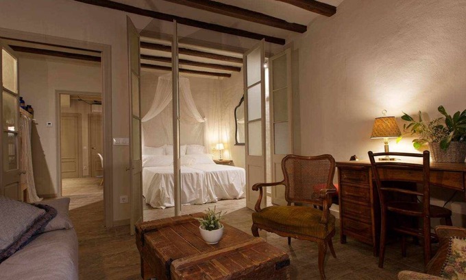 Charming flat in the Jardinet de Sant Esteve with very complete kitchen and bathroom. Super cosy decoration by Adela Torras, with lots of charm. It has a bedroom with double bed and double sofa bed in the living room.