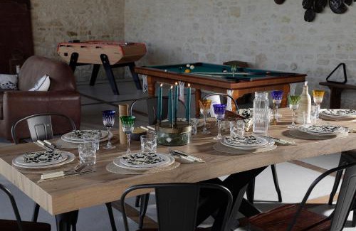 Providing a garden, L'Intemporelle offers accommodations in Landrais. The property is around 17 miles from Exhibition Park of La Rochelle, 17 miles from L'Espace Encan, and 18 miles from La Rochelle Train Station. There's a seasonal outdoor pool and guests have access to free Wifi, free private parking, and an electric vehicle charging station. Offering a terrace and garden views, the spacious vacation home includes 5 bedrooms, a living room, cable flat-screen TV, an equipped kitchen, and 4 bathrooms with a bath and a shower. Towels and bed linen are featured in the vacation home. There's also a seating area and a fireplace. The Minimes Marina is 18 miles from the vacation home, while La Rochelle Grosse-Horloge is 18 miles away. La Rochelle - Île de Ré Airport is 20 miles from the property.