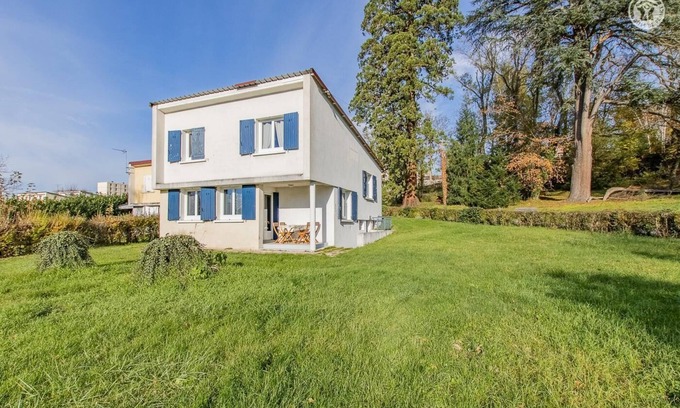 Unusual "sixties" pavilion with an atypical "modernist" architecture - completely rehabilitated into a comfortable resort - nestled on the slope at the foot of a well-exposed southern hillside, overlooking the Breuil lake & its leisure center ( multitude of activities for all ages / fishing, skatepark, children's play area, picnic tables, water activities, min-golf, etc.). In a peaceful & historic residential area (formerly linked to the local Iveco company) nestled in a dead end, a stone's throw from all the amenities & the medieval village, such as thermal establishments, the casino, numerous sports facilities. leisure activities (including swimming pool & tennis), the Puzenat public park steeped in history (6 ha enclosed with rare & remarkable century-old trees, where deer graze!). Historic spa town (recognized since antiquity by the Romans for the virtues of its "waters"), Bourbon-Lancy has a very rich heritage (11th century Romanesque church, medieval enclosure and its half-timbered houses, ramparts district , various castles, churches & chapels, etc.) and enjoys the surrounding gentle hilly countryside, between agriculture & "outdoor nature", a magnificent preserved green setting combining sublime Charolais bocage, fields of crops, beautiful forests, rivers & ponds. Comfortable cottage. Spacious & bright. Warm country style with contemporary accents, mixed with the exotic vintage atmosphere of the place. Pleasant natural garden of 800m² (perfect play area for children). Mini sheltered terrace. Composition: Detached house on 2 levels with half floor (entrance on one level from the top from the courtyard). Gas central heating. Laundry room in the basement. Ground floor: living room-kitchen-garden. Half floor: office, separate toilet. 1st floor: 2 bedrooms (double bed 140x190cm / double bed 140x190cm), bathroom (bathtub). Parking + bicycle storage + sheltered mini-terrace + private garden (800m²). Supermarket 600m away. Shops 800m away.