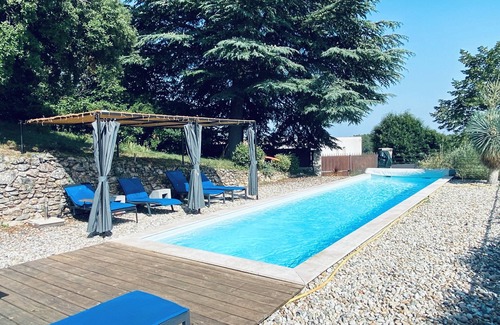 Orangery 18th of a castle opposite village Joannas, rehabilitated in Loft of 130 m2, 2 levels with swimming pool sported 13X3 and big terrace. View in France 5 reportage in November 2018 for its original and neat rehabilitation. >>> Stays accepted from Saturday to Saturday, 7 nights min <<<