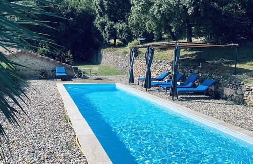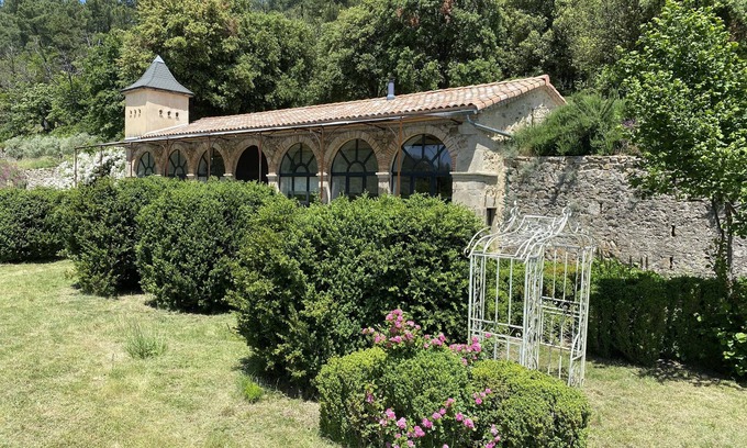 Unique terraced site on the edge of the Monts d'Ardèche Natural Park. Gardens, boxwood, olive trees, orchards.