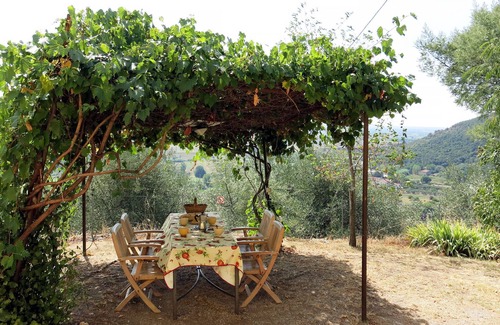 Country house "L'Uccelliera", 100 m a.s.l.. 3.5 km from the centre of San Giuliano Terme, 4.5 km from the centre of Calci, 7 km from the centre of Pisa, in a secluded position on a slope, 25 km from the sea, in the countryside. Private: property 1'000 m2 with trees, natural garden, meadow. Pergola, garden furniture. 400 m long bumpy, steep, narrow motor access to the grounds. Parking (for 2 cars) on the premises. Shop 1.5 km, supermarket 1 km, bus stop 400 m, railway station "Pisa" 11 km, sandy beach 25 km. Golf course (9 hole) 35 km.