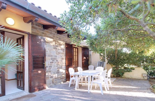 Small condominium composed of 12 apartments, one of which is available for summer rental, located directly on the beach of Rocchette, well-known area, 6 km from Castiglione. The apartments are all terraced all with private entrance and garden. An electric gate allows access to the property, which is completely fenced in, and includes private parking. The garden is well maintained and surrounded by hedges. The veranda in front of the apartment is furnished for outdoor dining. The front door leads to the living room divided into a sitting area with sofa, and a dining area with table and chairs for 5 people. The kitchen is well equipped with washing machine, dishwasher, and oven. There are two bedrooms, one double with direct access to the veranda and the other with a bunk bed. The bathroom has a shower and window. The apartment is well furnished and optimal to those who are looking for tranquility, proximity to the sea, and lots of outdoor space for children to roam freely and safely within the property. A frequent bus service connects Rocchette to the town center throughout the day. Located: 20 meters from the sea, 100 meters from shops, 6 km from village center.