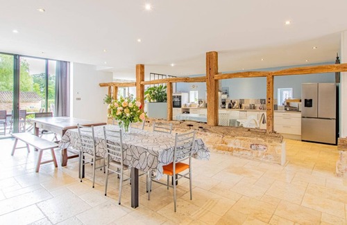 Authentic imposing traditional barn of character from the 18th century, steeped in history & carefully restored, adjoining an elegant church in the heart of a peaceful & picturesque little Burgundian village, perfectly preserved. In the middle of gentle rolling countryside, on the borders of Chalonnais and Tournugeois-Clunisois, on the edge of two vast wild forests (the Bois du Grand Bragny & the Forêt domaniale de la Ferté / to explore during relaxing walks or mountain bike rides), in the hollow of the bucolic Grosne valley (& its nearby fish-filled river), magnificent preserved setting of nature & greenery combining hillsides of vineyards & beautiful hedged meadows dotted with ponds, protected in "Natura 2000 Zone" & ZNIEFF for its rich fauna & flora ecosystems. Very comfortable gîte with atypical architecture. Ultra spacious. Exceptional living room of 100m². Warm country character with contemporary accents combined with the totally exotic soul of the place (stone walls & half-timbering including a sculptural "openwork skeleton", beams & framework... original). Lots of charm & character. Pleasant enclosed courtyard, planted & flowered, with a terrace completed by a garden nestled at the back of the house, including a large gravel terrace, a 4-seater outdoor spa, natural pétanque court & small garden. Composition: Semi-detached village house. Wood pellet stove + electric heating. Air-conditioned floor. Wifi (fiber). Ground floor: living room-kitchen-lounge, 2 bedrooms (double bed 140x190cm in each), bathroom (shower), separate toilet, laundry room. 1st floor: 3 bedrooms including 1 on a mezzanine (double bed 140x190cm) and 1 atypical (double bed 140x190cm + raised single bed 90x190cm) opening on the "second day" onto a 3rd (double bed 160x200cm) with a private bathroom (bath + shower), separate toilet. Terraces + small garden + outdoor spa (4 p.) in July/August + natural pétanque ground + private parking. Amenities including supermarkets 10 km away.