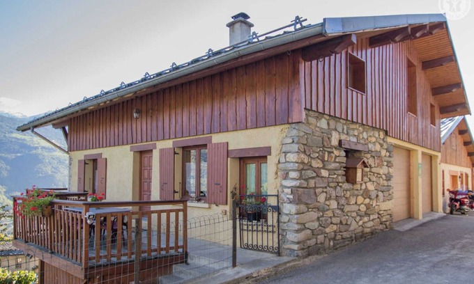 Gite in the owner's House. 1st FLR. (access on one floor): stay-kitchen sitting area, Wi-Fi, 2 bedrooms (1 bed 2 p, 1 bed 1 p / 1 bed 2 p, 1 1 p.), bathroom (bathtub).Balcony + terrace + small fenced. Granier 6 km (2 lifts), Montalbert ski / la Plagne 15 km. Landscaped water plan + recreation 8km. Country house renovated in a small hamlet overlooking the Valley. Hillside full South. Sector very quiet. Good comfort. Spacious. Light. Quality equipment. Large balcony-terrace well exposed. Nice patio walled & landscaped garden. Beautiful panoramic view over the massif.