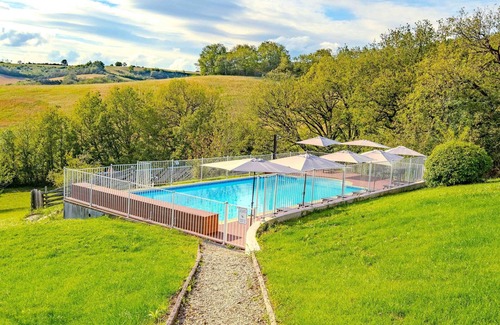 Surrounded by hills and meadows, it's a place to relax, breathe, and disconnect. The shared heated pool is just a short stroll away.