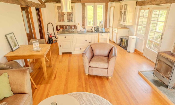 La Bergerie is a small, detached cottage – perfect for couples or solo travellers looking for peace and quiet. Thoughtfully restored and comfortably furnished, it features a spacious layout and a super-king-size bed (200 x 200 cm) for maximum comfort.