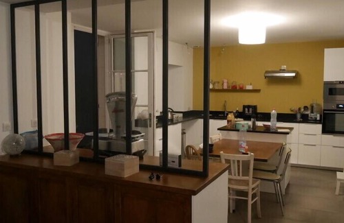 The house is built on a cellar, with an area of 290 m², it includes 12 beds (maximum 8 adults and 4 children), 7 bedrooms, 2 living rooms, 1 dining room / semi-open kitchen, a beautiful terrace (partly covered), a barn with a ping table -pong & outdoor games, a large garden of 3000 m² and a swimming pool. The garden gives an unobstructed view of the valley and the surrounding fields.