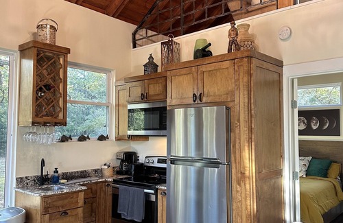 Cabin with 1 bedroom and a loft above the main room open living and kitchen area located in 10 acres of land cover in beautiful mature oak and red cedar trees has outdoor wood burning pit with complementary firewood-that can be use unless fire ban in place by Bastrop county… bring your RV also power/water connections available for $65 per night additional charge…