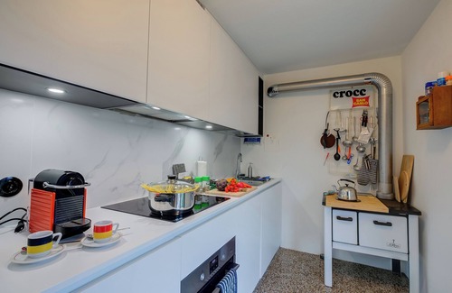 The rectory has a separate entrance on the ground floor. Entering on the right you will find yourself in a bright and cosy living room with balcony also ideal for a coffee or an open-air aperitif, a discreet opening will lead you into the beautiful kitchen arranged in such a way as to make you feel at home. In the kitchen you will find a coffee moke, electric oven, induction hobs, a nice fridge with freezer and all the kitchen utensils. Also on the ground floor is a large bathroom with a bathtub. Going upstairs, you will find 2 rooms with balconies, one with a double bed and one with separate single beds (but they can be coupled if desired). The double bedroom has a bathroom with shower. If you feel like writing or reading or working on your PC, an appropriate room is available for our guests.