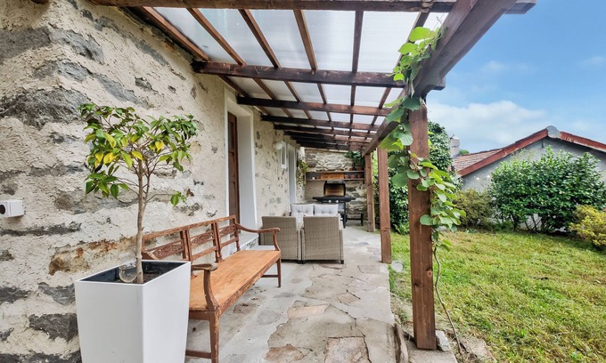 From the glass door on the ground floor (in the living room), you can access the outside and go down to the laundry room (a washing machine and dryer are provided for our guests), where you will be amazed at the space that can serve as a convivial corner for an aperitif with family or friends, or simply for a relaxing moment outside in front of your garden.