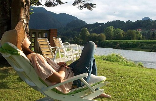 The plot is in the garden directly to the River pier. Private parking, barbecue and WIFI.