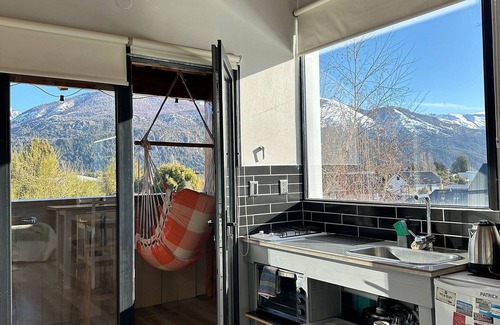 Bienvenido a San Carlos de Bariloche, el paraíso de la Patagonia Argentina!Si estás buscando el lugar perfecto para tu próxima escapada de vacaciones, no busques más. San Carlos de Bariloche te espera con los brazos abiertos, ofreciendo una experiencia única que combina la majestuosidad de la naturaleza con la comodidad de un alojamiento acogedor. En Bariloche, te sumergirás en un mundo de belleza natural incomparable. Los picos nevados de la Cordillera de los Andes, los espejos de agua cristalina de los lagos Nahuel Huapi, Moreno y Gutiérrez, y la exuberante vegetación de los bosques patagónicos te rodearán en cada paso que des. No importa la época del año en la que nos visites, siempre encontrarás actividades emocionantes para disfrutar, como el esquí en invierno, el senderismo en verano, y la exploración de la ciudad durante todo el año. Descubre el encanto de Patagonia desde nuestro acogedor apartamento situado a solo 20 minutos del vibrante centro de San Carlos de Bariloche. y a 15 de los principales puntos turísticos. Perfecto para hasta 2 personas, este refugio cuenta con zona de dormitorio con cama matrimonial, baño moderno con ducha, cocina y todas las comodidades que necesitas para sentirte en casa. La hamaca en el balcón es la estrella de este alojamiento ,espacio ideal para relajarse y disfrutar de las hermosas e impactantes montañas que rodean a nuestra ciudad. . A unos minutos del resplandeciente Lago Nahuel Huapi, es el punto de partida ideal para aventuras diurnas y noches tranquilas bajo el cielo andino. Ya sea que busques sumergirte en la arquitectura alpina del centro, deleitarte con el famoso chocolate de Bariloche, o simplemente relajarte junto al lago, nuestro espacio te ofrece la combinación perfecta de proximidad, confort y autenticidad patagónica. Relajate en este alojamiento único y tranquilo. Monoambiente equipado para dos personas .Cama matrimonial, wifi apto para home office, heladera , cocina de dos hornallas , horno eléctrico y tv con directv. Baño moderno con ducha . Servicio de toallas y sábanas incluido. Ubicado sobre calle principal con fácil acceso al transporte público . A 15 minutos de los principales puntos turísticos y a 20 minutos en auto del centro de Bariloche . Ventanales grandes y balcón con vistas a las montañas.