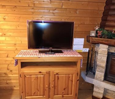Food & DrinkTea/Coffee makerBathroomTowels, Private bathroom, Toilet, Hairdryer, Shower, Free toiletries, Bidet, Body soap, Toilet paper, ShampooMedia & TechnologyCable channels, Flat-screen TV, TVKitchenDining table, Coffee machine, Microwave, Kitchen, Kitchenware, Washing machine, High chair, Electric kettle, Oven, Toaster, Wine glasses, Stovetop, Refrigerator, Cleaning productsLiving AreaFireplace, Sofa, Desk, Sitting areaOutdoorsOutdoor dining area, Terrace, Outdoor furniture, Barbecue, PatioGeneralFire extinguisher, Heating, Private entrance, Hardwood or parquet floors, Tile/Marble floor, Trash cans, Interconnecting room(s) available, Key accessViewMountain view, View, Garden viewBedroomChildrens' cribs, Wardrobe or closet, LinensAccessibilityEmergency cord in bathroom, Entire unit located on ground floorBuilding CharacteristicsDetachedRoom AmenitiesSofa bed, Non-feather pillow, Clothes rack, Drying rack for clothing, Socket near the bedPool and SpaPool towels |