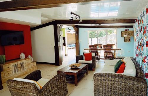 Providing a garden, La case d'Isabelle features accommodations in Saint-Denis. This property offers a private pool, free Wifi, and free private parking. Featuring a terrace with sea views, this chalet also comes with a satellite flat-screen TV, a well-equipped kitchen with an oven, a microwave, and a fridge, as well as 2 bathrooms with a walk-in shower. The property has an outdoor dining area. Cirque de Salazie is 30 miles from the chalet. Roland Garros Airport is 9.3 miles from the property.