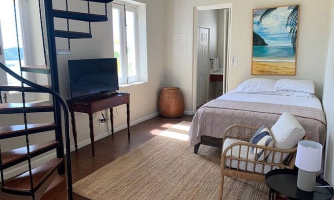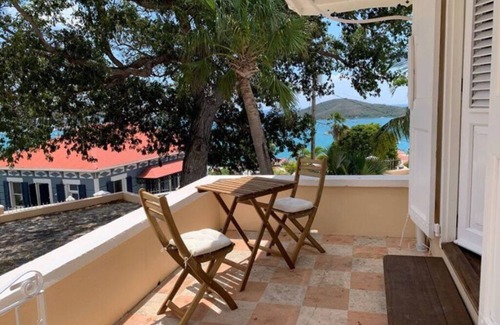 Historic property recently renovated with modern amenities. Mahogany floors and a spiral staircase lead up to an intimate loft with King size bed and new luxurious linens. Views of Charlotte Amalie, nearby parks, historic churches and the fort can be seen from La Casita’s private patio and windows on both levels of this unique loft unit.