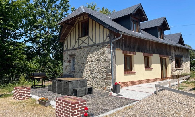 Offering a garden, La Charreterie au pays de Honfleur provides accommodations in Genneville. This property offers access to a terrace and free private parking. Norman Museum of Ethnography and Popular Arts is 5.5 miles from the vacation home and Honfleur's Old Harbour is 5.5 miles away. With free Wifi, this 3-bedroom vacation home offers a flat-screen TV, a washing machine, and a fully equipped kitchen with a dishwasher and oven. Towels and bed linen are featured in the vacation home. The property has an outdoor dining area. La Forge Museum is 5.6 miles from the vacation home, while Trouville-Deauville SNCF Railway Station is 11 miles away. Deauville - Normandie Airport is 5.6 miles from the property.