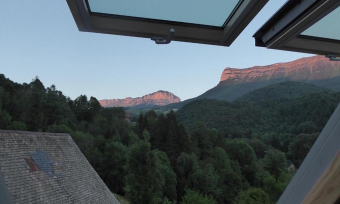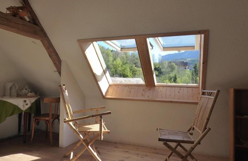 Located in the Hauts de Chartreuse Natural Reserve et 7 k from Cirque de Saint-Même waterfall, La Chouette à l'heure du Pinson B&B is set in a renovated old farm sitting in a garden with garden furniture. Free WiFi is available throughout. The guest rooms come with an private bathroom with free toiletries and hairdryer and an electric kettle. All have garden or mountain views, a sloping roof and wooden beams. Every morning, guests can enjoy a continental breakfast with a range of breads, jams, yogurt and fruit juices. Restaurants can be found just 0.9 mi away. Guests can go walking or snowshoeing in the ski resort 3.7 mi away. Painting and drawing activities can be organized on site. Chambéry Train Station is 17 mi away, while access to A43 Motorway is possible 14 mi away. Free public parking is available on site.