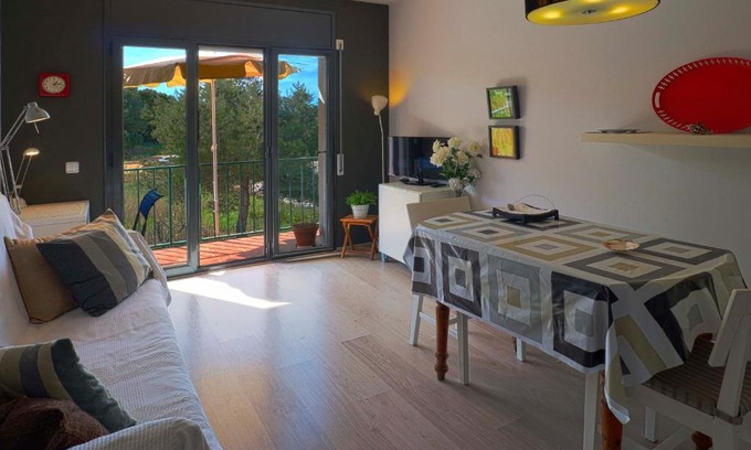 La Conca, encantador apartamento para 2 pax E34026 offers accommodations in S'agaro, 22 miles from Girona Train Station and 24 miles from Water World. With garden views, this accommodation offers a terrace. Medes Islands Marine Reserve is 27 miles away and Golf Playa de Pals is 21 miles from the apartment. This apartment includes 1 bedroom, a living room and a TV, an equipped kitchen with a dining area, and 1 bathroom with a shower and a washing machine. For added convenience, the property can provide towels and linens for a supplement. For added privacy, the accommodation features a private entrance. Popular points of interest near the apartment include Cala Pedrosa, Platja Sa Conca, and Sant Pol. Girona-Costa Brava Airport is 20 miles from the property.