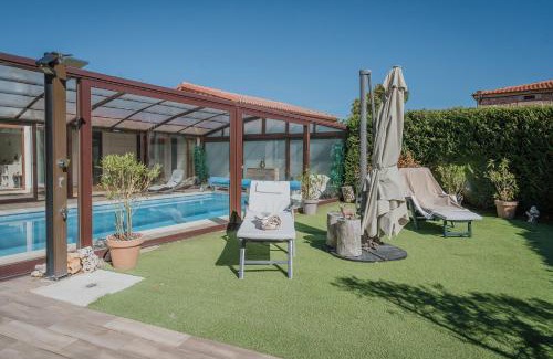 BathroomTowels, Private bathroom, Guest bathroom, Free toiletries, Hairdryer, Shower, BathrobeMedia & TechnologyCable channels, TVGeneralHeating, Air conditioning, Fire extinguisher, Ironing facilities, Private entranceOutdoorsBarbecue, Outdoor furniture, Patio, Balcony, Terrace, Private poolKitchenRefrigerator, Microwave, Kitchen, Oven, Kitchenware, Washing machine, Coffee machine, Stovetop, Toaster, DishwasherLiving AreaDeskViewQuiet street view, Garden viewBedroomLinensAccessibilityShower chair, Raised toilet, Entire unit wheelchair accessibleEntertainment & Family ServicesBoard games/puzzlesPool and SpaPool towels, Heated poolFood & DrinkBottle of water |