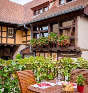 Located an hour's drive south of Strasbourg, La Cour du Bailli offers a spa center with an indoor pool and hot tub. It features a medieval decor and a terraced courtyard. Each studio and apartment at the Cour du Bailli is equipped with a kitchenette and TV. They have a private bathroom. The Restaurant La Cave du Bailli serves regional cuisine and a variety of wines. During the summer, guests can enjoy meals on the terrace. Guests have access to the hotel's free internet terminal and can book and massage treatment, at a surcharge.