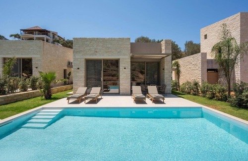 Welcome to La Divina Villas -- Villa Eftihia, a brand new retreat in Chania, where comfort meets simplicity and design whispers elegance. Inspired by the timeless grace of Maria Callas, La Divina Villas blend minimal aesthetics with earthy textures, creating a space that feels both refined and deeply relaxing. Crafted with natural stone, wood accents and soft tones, Villa Eftihia unfolds across 125sqm of modern coziness, offering all the essentials for a carefree Cretan stay.
