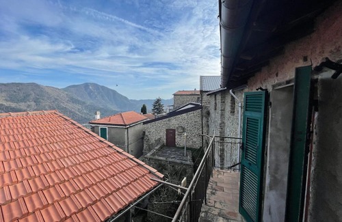 Located at the highest point of the historic village of Bajardo, 1,000 metres above sea level, this cosy house offers a spectacular view over the green valleys and the French Alps. Recently renovated with great attention to detail, it combines the authentic charm of Ligurian architecture with modern comfort. The interior preserves the original rustic atmosphere, with exposed beams, local stone and a fireplace perfect for relaxing in any season. The house has two bedrooms, two bathrooms, a fully equipped kitchen and a warm and inviting living room. Outside, a private terrace allows you to enjoy the cool evening breeze under a starry sky, in total tranquillity. Just a five-minute walk away, among the village's cobbled streets, five restaurants await you where you can enjoy typical Ligurian dishes and excellent local wines. An ideal location for those seeking peace, nature and authenticity.