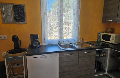 - 1 fully equipped kitchen (oven, microwave, ceramic hob, dishwasher, fridge, coffee maker, dishes, pots and pans ...)