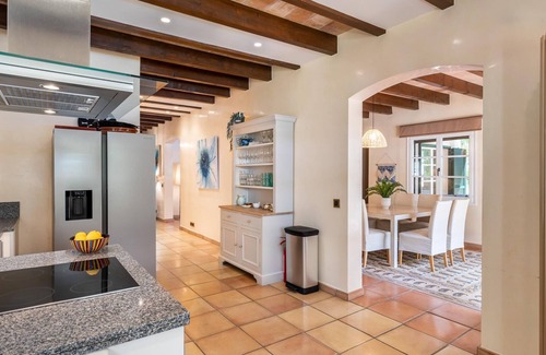 Retreat to the exquisite Villa La Font 64, a stunning three-bedroom Mallorcan villa located in the leafy and exclusive La Font suburb of Pollensa. Positioned in one of the most sought-after residential areas in La Font, this villa is just a stone's throw away from the historic Pollensa old town.Indulge in the luxurious interiors of this tastefully decorated home, combining modern and traditional furnishings. The villa is embraced by lush gardens, creating a tranquil haven perfect for your holiday escape.The villa boasts a sumptuous master bedroom with an en-suite bathroom, a dressing room, and its own balcony that overlooks the large swimming pool. Additionally, two cosy bedrooms and shower rooms, one of which opens up onto a balcony area at the front of the house.Unwind in the open-plan lounge and dining room area, perfect for relaxing after a long day of exploring the island's attractions. The spacious modern kitchen has all the necessary amenities, including a separate utility room with a washing machine, dryer, and extra fridge.Outside, the mature garden provides a perfect space for al-fresco dining and relaxation. The garden also features a BBQ area equipped with an ample outdoor lounge and dining table, ideal for entertaining guests. The large private 10m swimming pool can be heated for an additional fee, providing a delightful spot for swimming and unwinding, even on cooler days.The villa's well-manicured green lawns offer ample space for children to run around and play games. Villa La Font 64 is the quintessential home away from home, providing you with all the amenities and comfort needed for a memorable holiday in Mallorca.