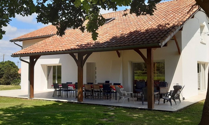 In ORX, 10 minutes from the beaches of Capbreton, Hossegor or Labenne, we offer for your holidays this very bright house in a very quiet location with 180 m2 at your disposal and a large garden