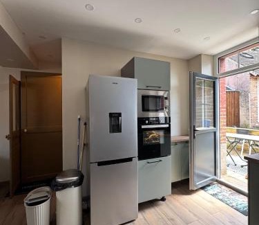 | BathroomToilet, Bathtub or shower, Guest bathroom, Towels/Sheets (extra fee), Private bathroom, Toilet paper, Shared toilet, Body soap, Shower, Towels, HairdryerMedia & TechnologyStreaming service (like Netflix), TV, Flat-screen TVGeneralSmoke Alarm, Air conditioning, Key access, Hardwood or parquet floors, Interconnecting room(s) available, HeatingKitchenKitchenware, Kitchen, Dryer, Wine glasses, Washing machine, Dining table, Oven, Stovetop, Toaster, Cleaning products, Dishwasher, Electric kettle, Microwave, Coffee machine, RefrigeratorLiving AreaSitting area, Dining area, SofaViewCity view, View, Garden viewBedroomLinens, Wardrobe or closet, Childrens' cribsOutdoorsTerrace, Outdoor furniture, Outdoor dining areaAccessibilityEntire unit located on ground floorRoom AmenitiesClothes rack, Fold-up bed, Drying rack for clothing, Non-feather pillow, Feather pillowFood & DrinkBottle of water |