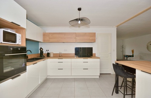 The Cocoonr/Book&Pay agency offers this 103 m² house for rent in Décines-Charpieu, which can accommodate up to 8 travelers. It features an attractive 40 m² living room, an open-plan fitted kitchen, four bedrooms, two bathrooms (with shower) and a 120 m² garden. Bed linen and towels included, we're waiting for you!