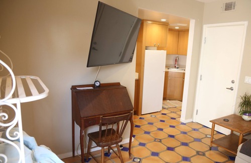 Cozy, secluded studio with a private entrance and patio. The unit has a kitchen and a full bath. Located in a quiet neighborhood two blocks to Windansea, one of the premiere beaches in the world. Sectional couch has sleeper modules which are extremely comfortable and easy to convert. The studio is small but well laid out and private. We are attentive to your specific needs.