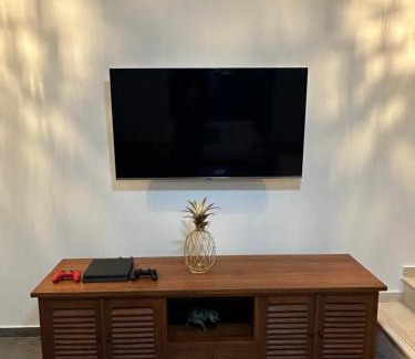 Food & DrinkTea/Coffee makerMedia & TechnologyTV, Flat-screen TV, Cable channelsKitchenMicrowave, Wine glasses, Toaster, Cleaning products, Kitchen, Coffee machine, Kitchenware, Refrigerator, Electric kettle, Oven, Dishwasher, Washing machine, Stovetop, Dining table, KitchenetteGeneralFan, Ironing facilities, Private entrance, Electric blankets, Smoke Alarm, Tile/Marble floorLiving AreaDining area, Sitting area, SofaBathroomBathtub or shower, Toilet paper, Private bathroom, Walk-in shower, Toilet, Body soap, Shampoo, TowelsBedroomWalk-in closet, Childrens' cribsViewViewOutdoorsOutdoor furniture, Terrace, Barbecue, Private poolAccessibilityUpper floors accessible by stairs onlyEntertainment & Family ServicesBoard games/puzzlesInternetGame console - PS4Room AmenitiesSocket near the bed, Non-feather pillow |
