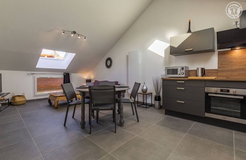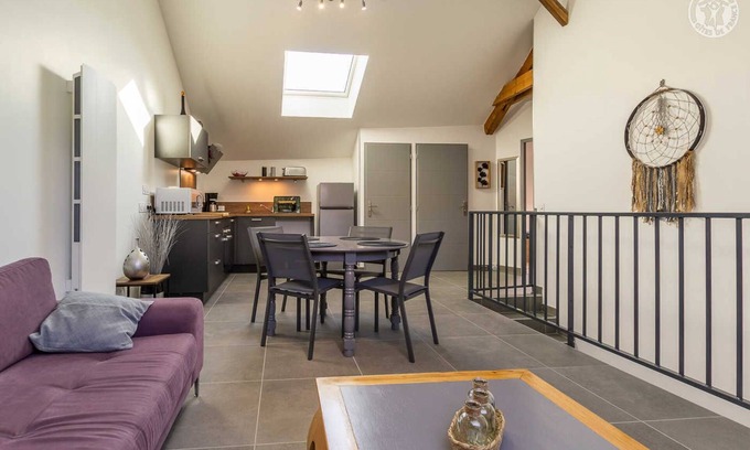 Apartment on the 1st and 2nd floors of a village house including the owner's house on the 1st floor. Access by an external and independent metal spiral staircase. On the 1st floor: entrance, landing with a table for 2 people. On the 2nd floor: living room-kitchen area, pantry, 2 bedrooms (1 double bed 160x200 cm / 1 double bed 140x200 cm), bathroom (shower), separate toilet. 1 private parking space. La Lulitière is located in a rural setting on the edge of the forest and the Croset stream. At the crossroads of the Alpine valleys leading to Albertville, Chambéry or Grenoble, it is a base camp of choice for discovering the massifs of Belledonne, Chartreuse or Bauges, without forgetting the Valley of Oils. The Alpespaces business park is also 3km away.