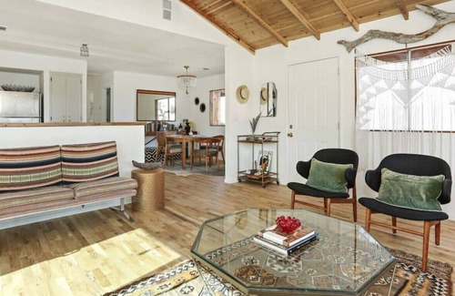 La Luna Cabin | Scenic Views of Joshua Tree has 2 Bedrooms , 1 Bathroom, and max occupancy of 5 people. The minimum rental for this property is 1 nights, but this can change depending on the season you plan on staying. Previous guests have given good rated it, and VRBO labeled it a top-rated Cabin because of the excellent services rendered by the owner or manager of this Cabin, and has consistently provided great experiences for their guests. Most families or guests that use it recommend it to their friends and some of them are repeat guests. Cabin has a friendly neighborhood, and the Yucca Valley has interesting places to visit. If you want to learn more about the Cabin in Yucca Valley, such as places to visit and things to do nearby, you can check below to learn more.