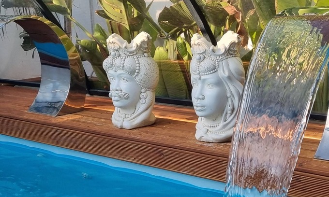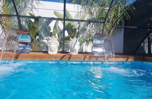 Unique experience in the SPA pool, with natural hot water, unique relaxation in the comfortable suite, with pool and garden view, TV, bathroom with XL shower, wooden patio, solarium, garden with dining area, outdoor kitchen, 2 km from the Valle dei Temples and 5 km from the beaches, 15 km Scala dei Turchi. THE WHOLE 130 SQM STRUCTURE IS FOR THE EXCLUSIVE USE OF THE 2 GUESTS. (THE CLIMATIC COVER IS INSTALLED IN THE WINTER SEASON).